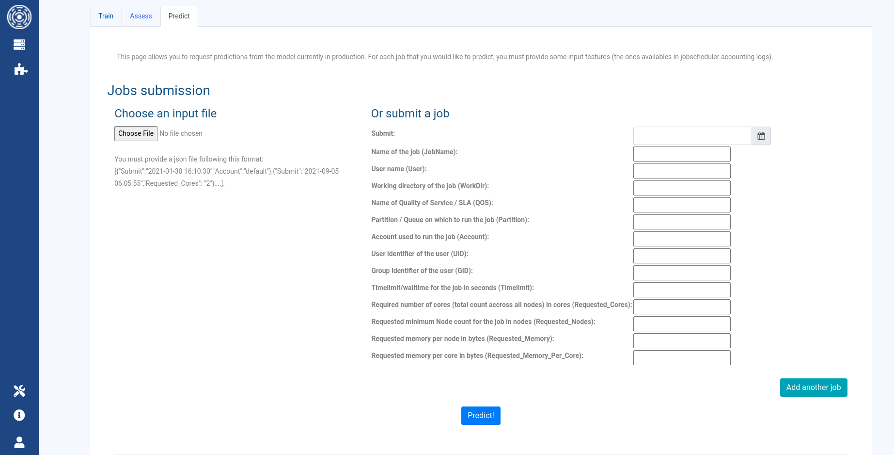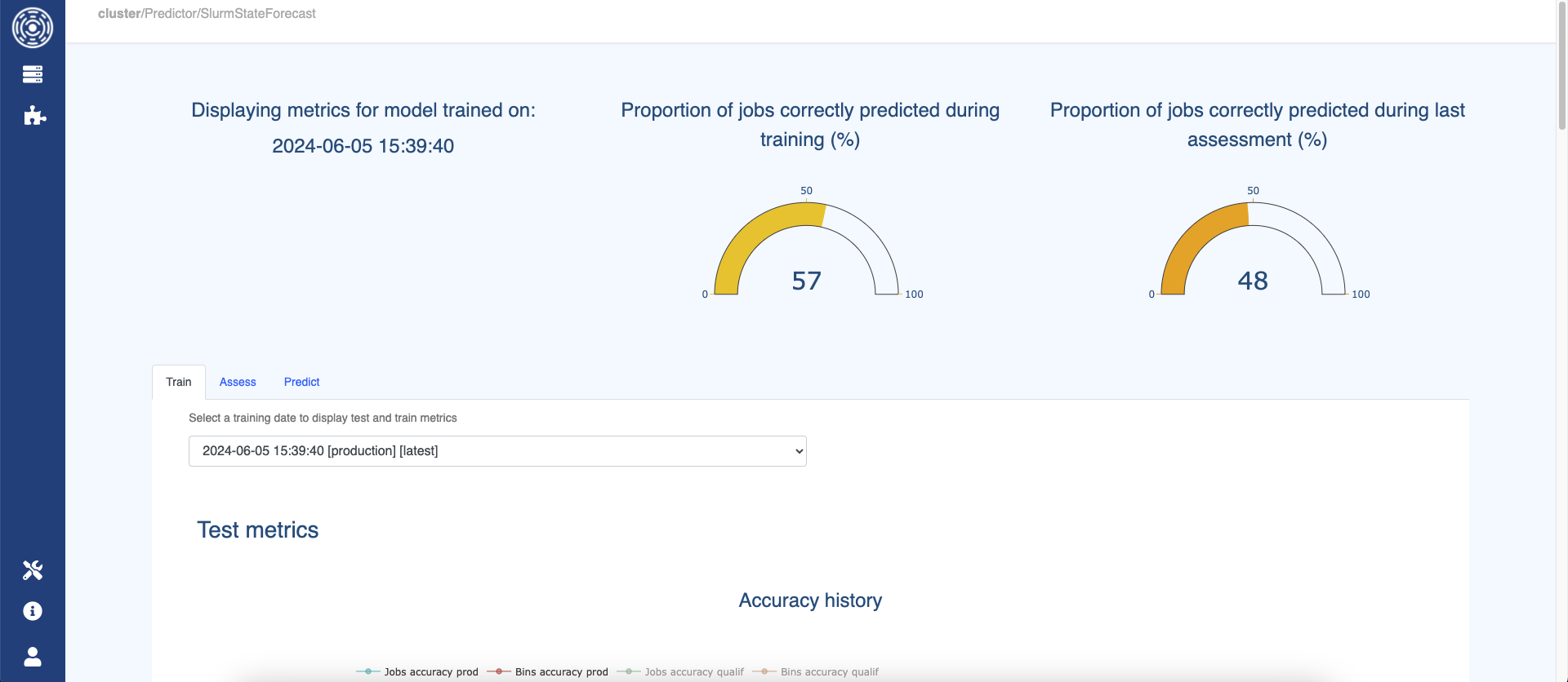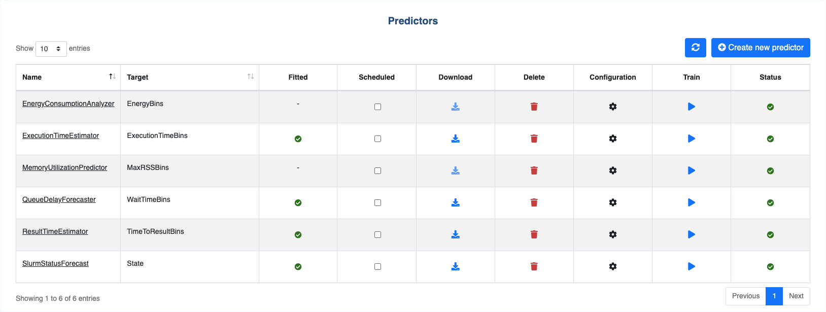 By clicking on a Predictor name you can get access the page allowing you to investigate models accuracies as well as request predictions from the associated trained model.