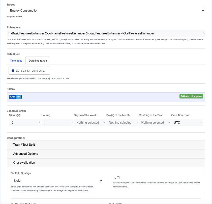 page and filter the input jobs used to train the models. You can also add several data enhancers (see Data enhancers on how to create you own data enhancer). By default, 4 enhancers are set to create advanced features for Predictors: