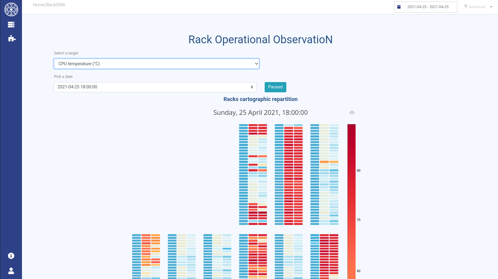 RackOON shows you the racks and nodes the way they are spatially arranged in the room.