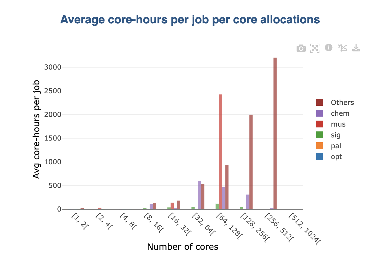 By default, the grouping is displayed as a stack on graphs (see picture above). This is the case for all values that can be summed (e.g., number of jobs):