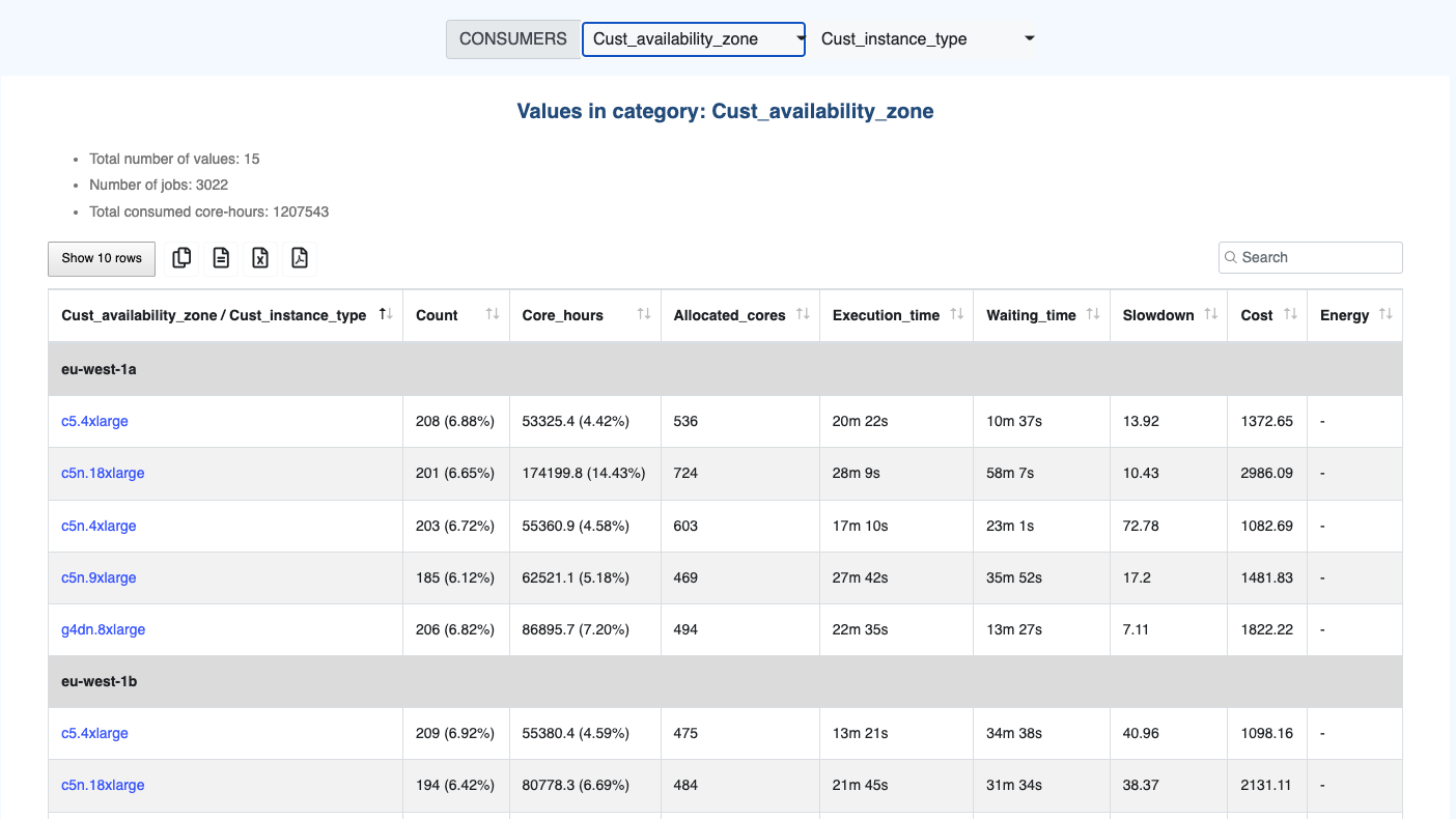 “Standard” metrics and information provided by the job scheduler might not be sufficient to efficiently manage the Cloud clusters. For example, tracking the cost of running jobs becomes even more important in order to monitor and manage your budget, and redistribute the costs to your users/departments. Due to the wide variety of compute instance types in the cloud, it can also be interesting to track on which instance types the jobs have run, in order to check their performances and associated costs, and further improve the placement and instance selection of the jobs.