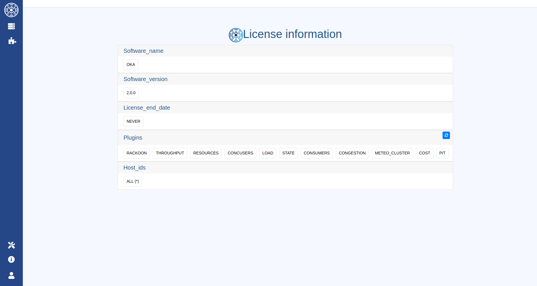 Info regarding your current license can be found on this page https://<OKA SERVER>/license_info