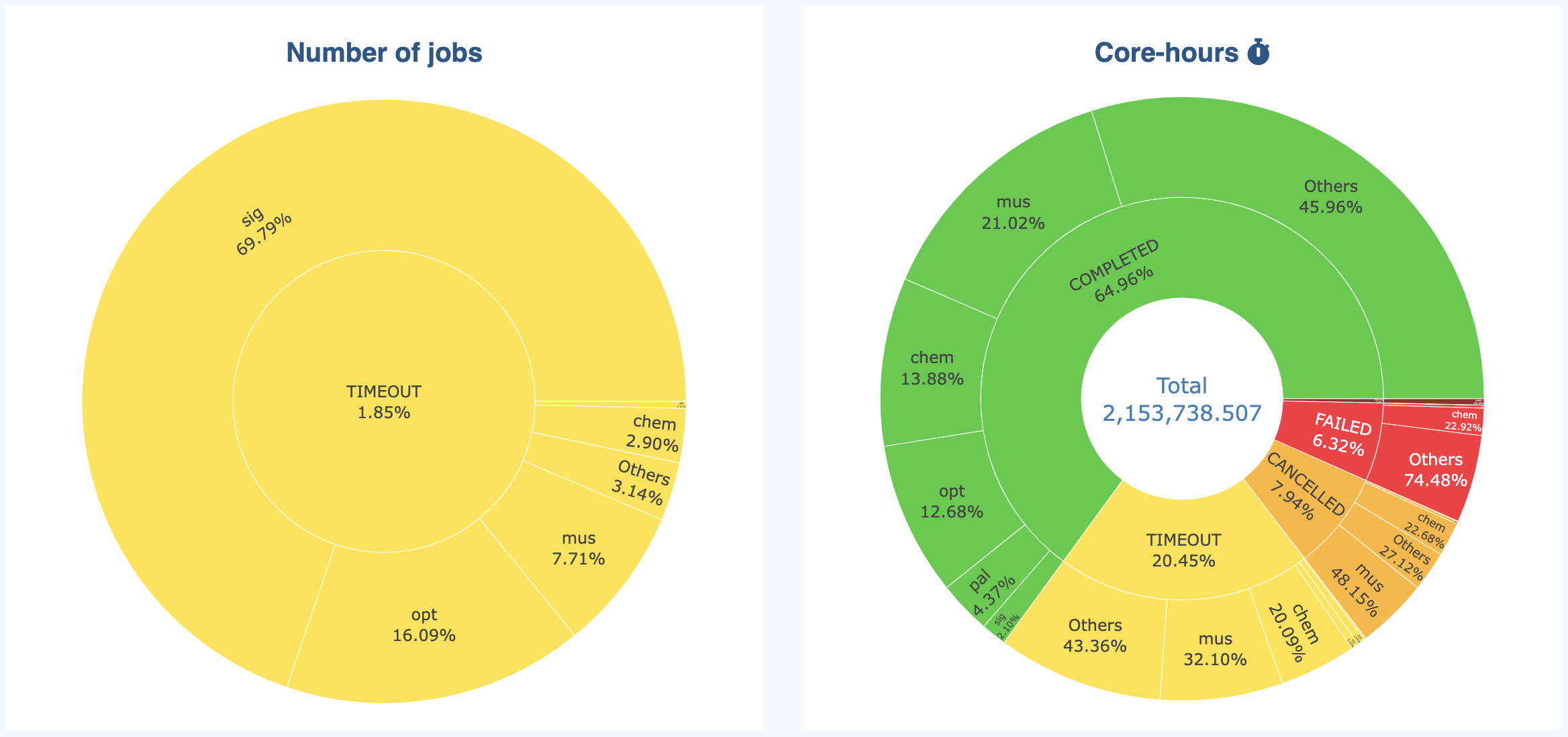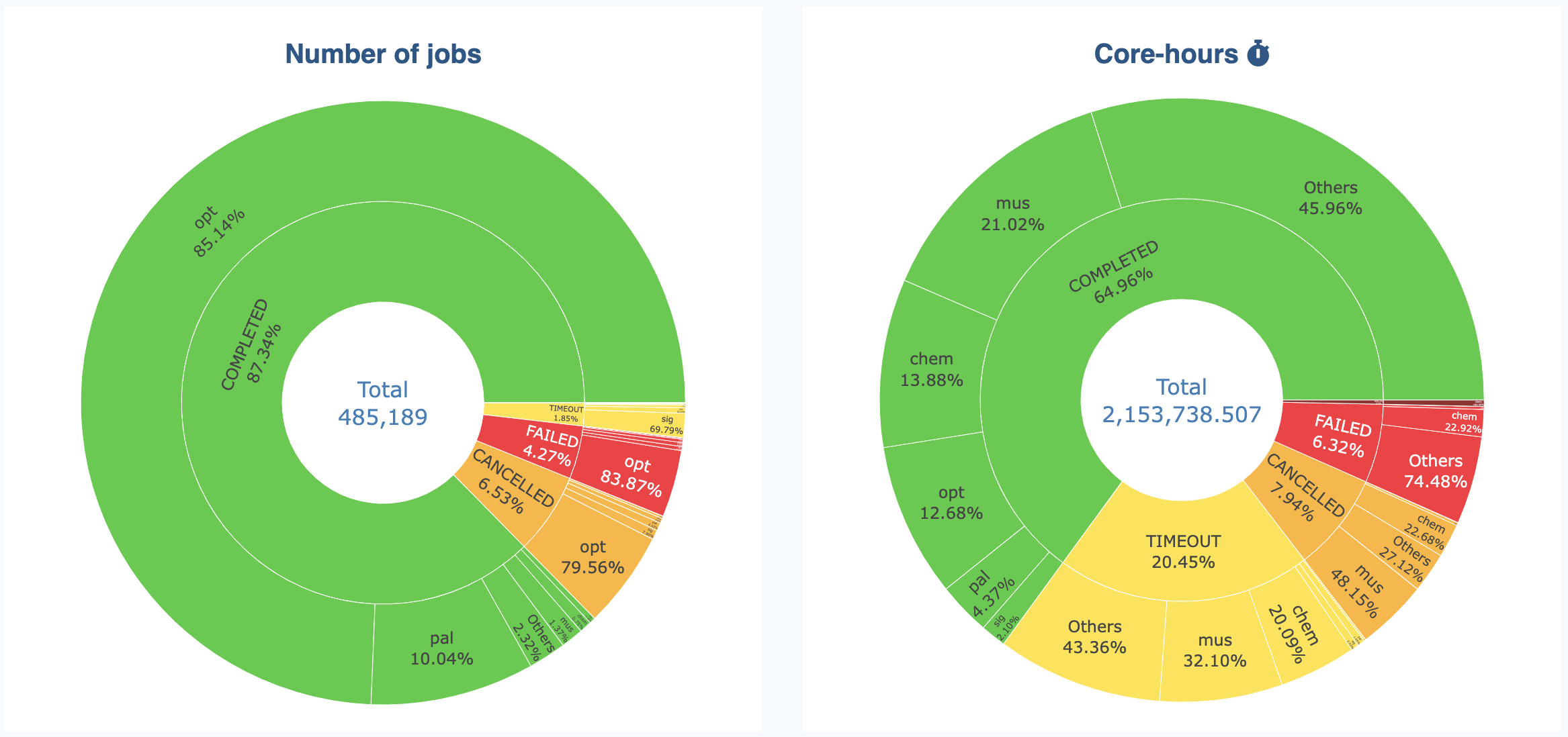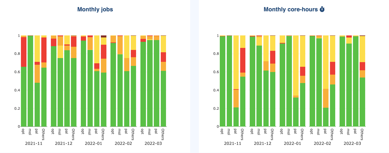 By default, the grouping is displayed as a stack on graphs (see picture above). This is the case for all values that can be summed (e.g., number of jobs):
