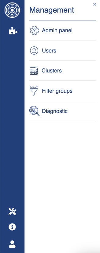 Administrator can navigate through management capabilities directly from this menu.