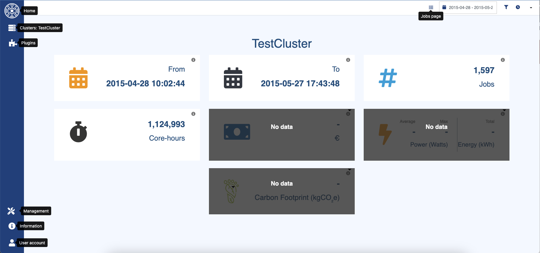 Upon successful login, you will reach OKA’s home page. This page shows some KPIs (see KPI) about the Job Scheduler logs available in OKA’s database.