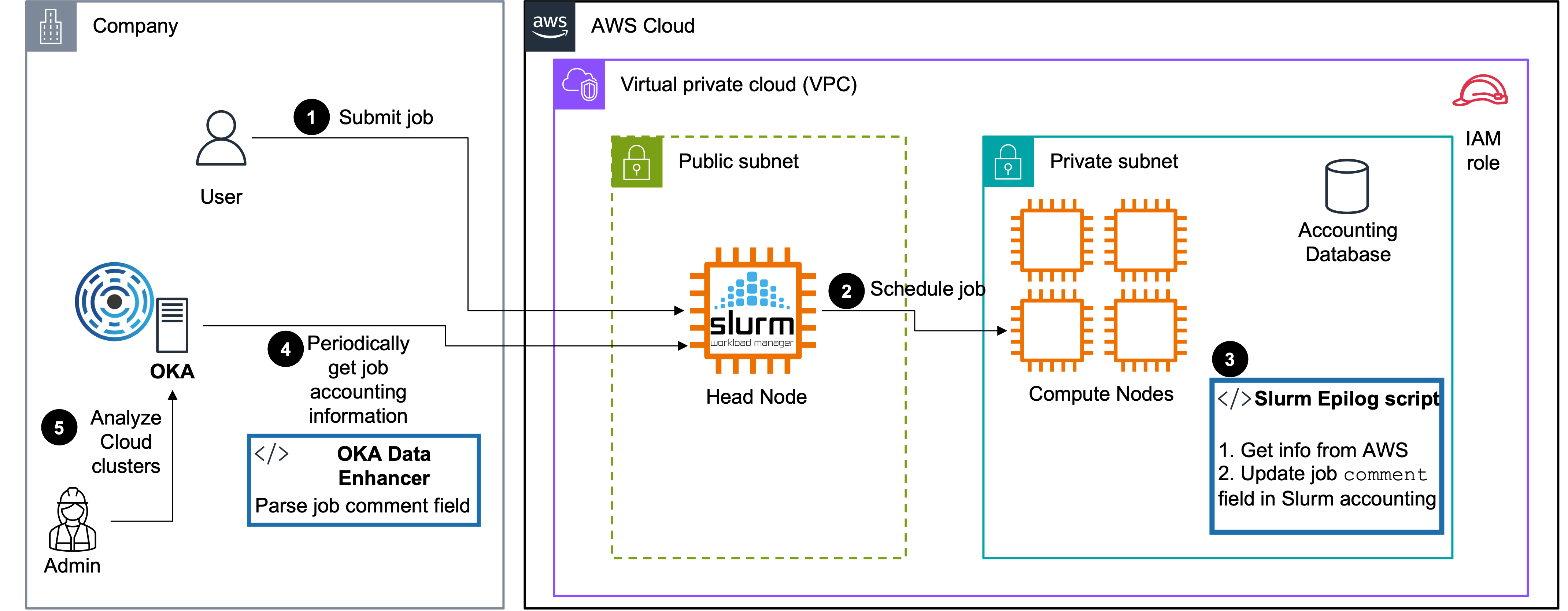 OKA offers many benefits to monitor your jobs, and deep-dive into how your clusters behave and how they are being used by your end-users. Accessing information about the Cloud in OKA is straightforward once your environment is properly configured. In this article, we present a simple integration that can be made in a Slurm cluster on AWS to retrieve the type of instances jobs runs on, their pricing information (on-demand/spot, per hour price…), the AWS region, and virtually any information about the AWS environment you are using. The scripts provided below are given as examples, and can easily be adapted to retrieve more detailed information, or be adapted to work with other job schedulers (e.g., LSF, PBS…).