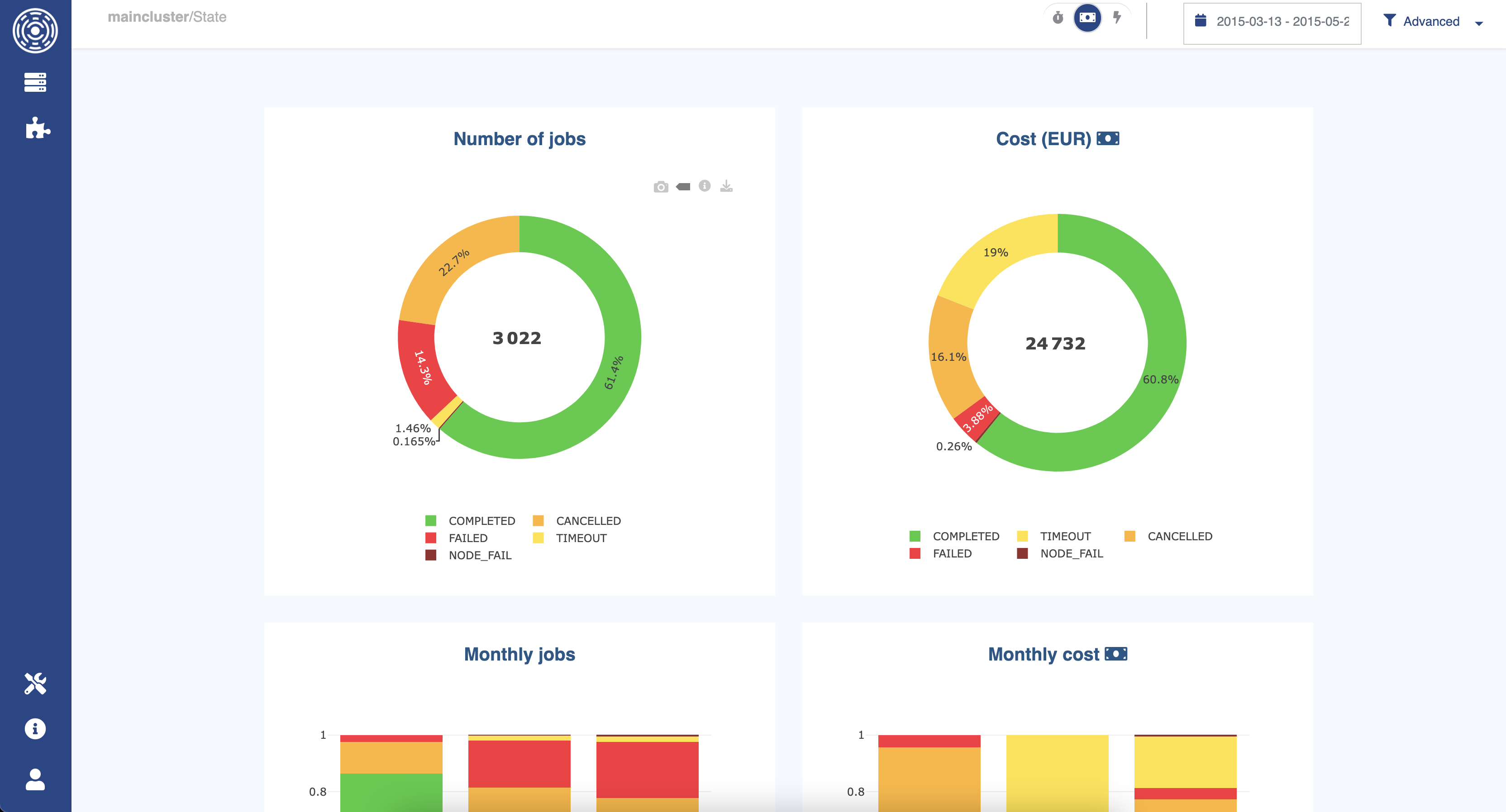 “Standard” metrics and information provided by the job scheduler might not be sufficient to efficiently manage the Cloud clusters. For example, tracking the cost of running jobs becomes even more important in order to monitor and manage your budget, and redistribute the costs to your users/departments. Due to the wide variety of compute instance types in the cloud, it can also be interesting to track on which instance types the jobs have run, in order to check their performances and associated costs, and further improve the placement and instance selection of the jobs.