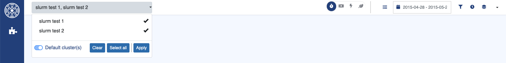 The cluster selection panel lets you choose which cluster(s) to include in all data views and modules. When one or more clusters are selected, every OKA module displays data only for those clusters.