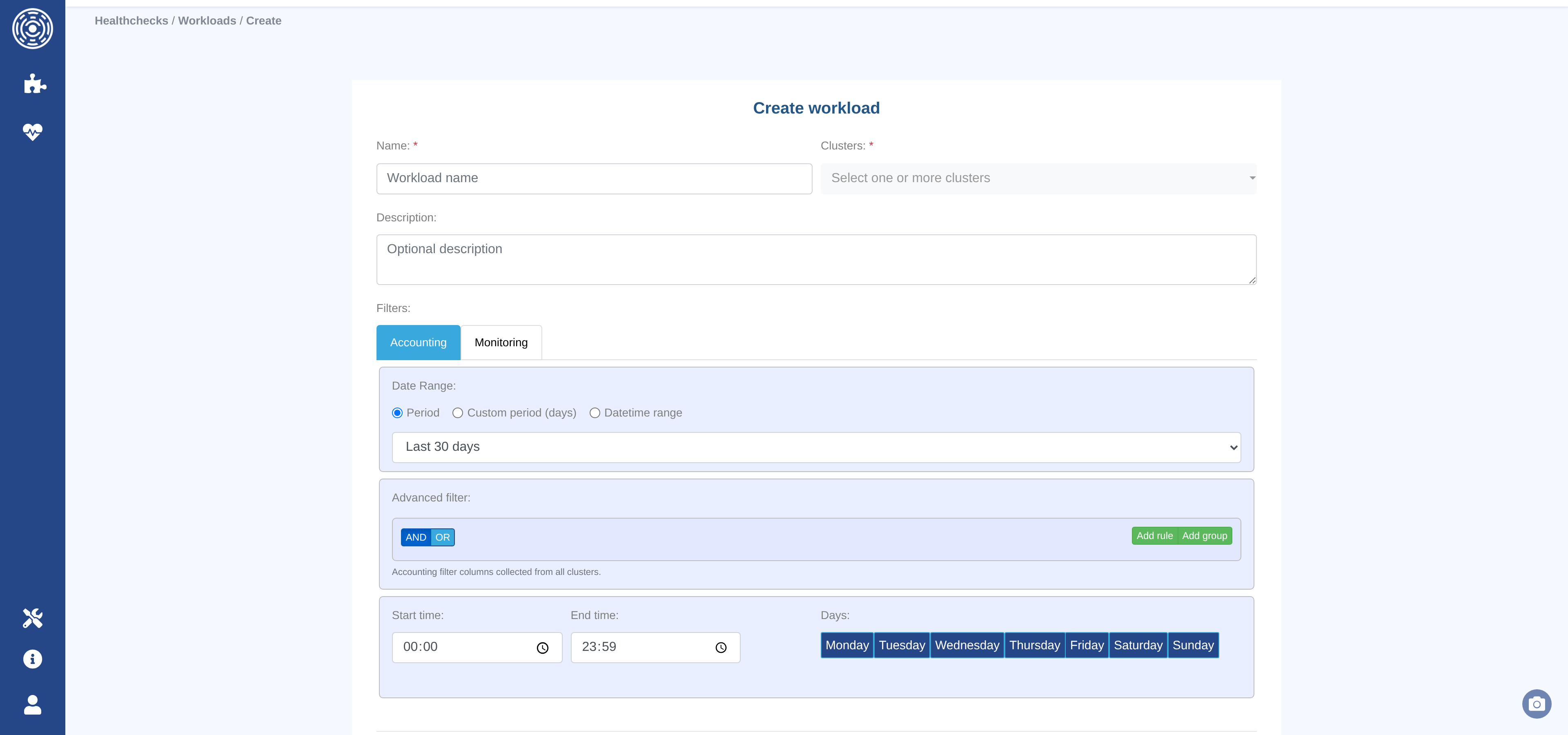 Creating or editing a workload