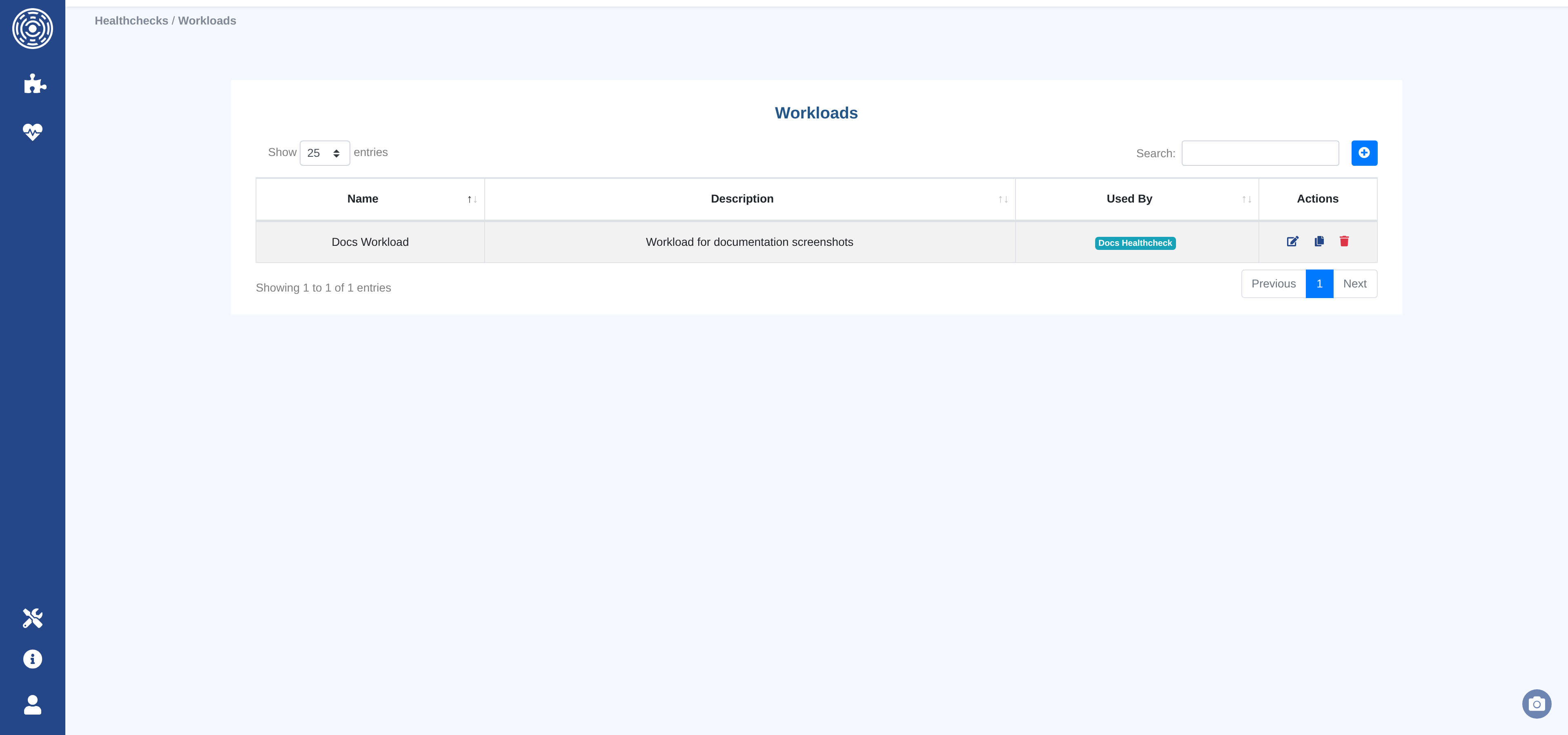 From this page you can create, edit, or delete workloads.