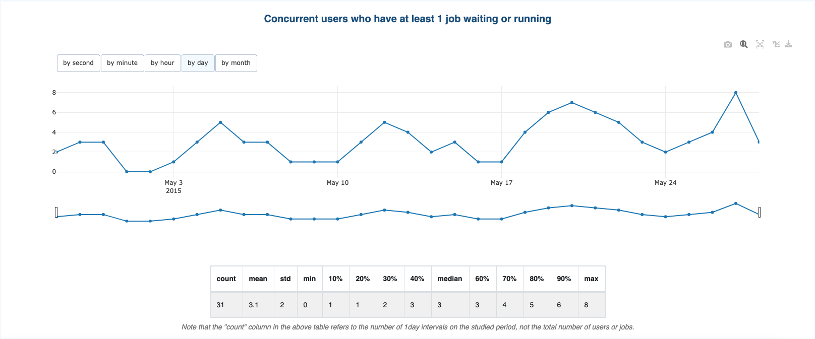 Number of users with at least 1 job waiting or running per time period.